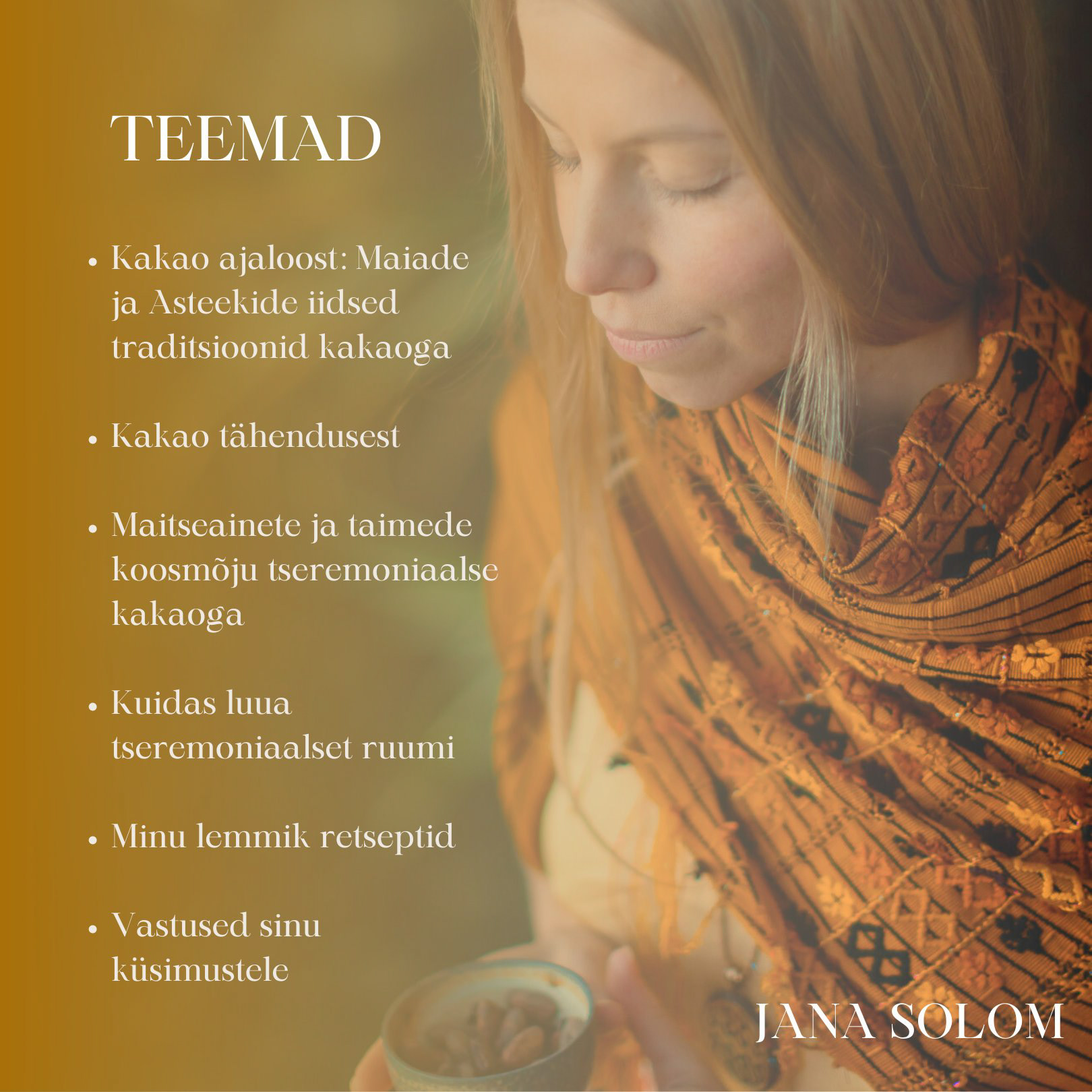 Sellel kokkusaamisel kogeme kakao tseremooniat ja samal ajal omandame uusi teadmisi.